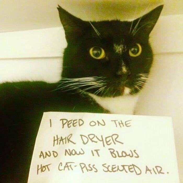 «Я пописал на фен, и теперь он дует воздухом, воняющим кошачьей мочой»