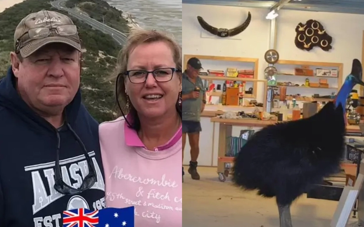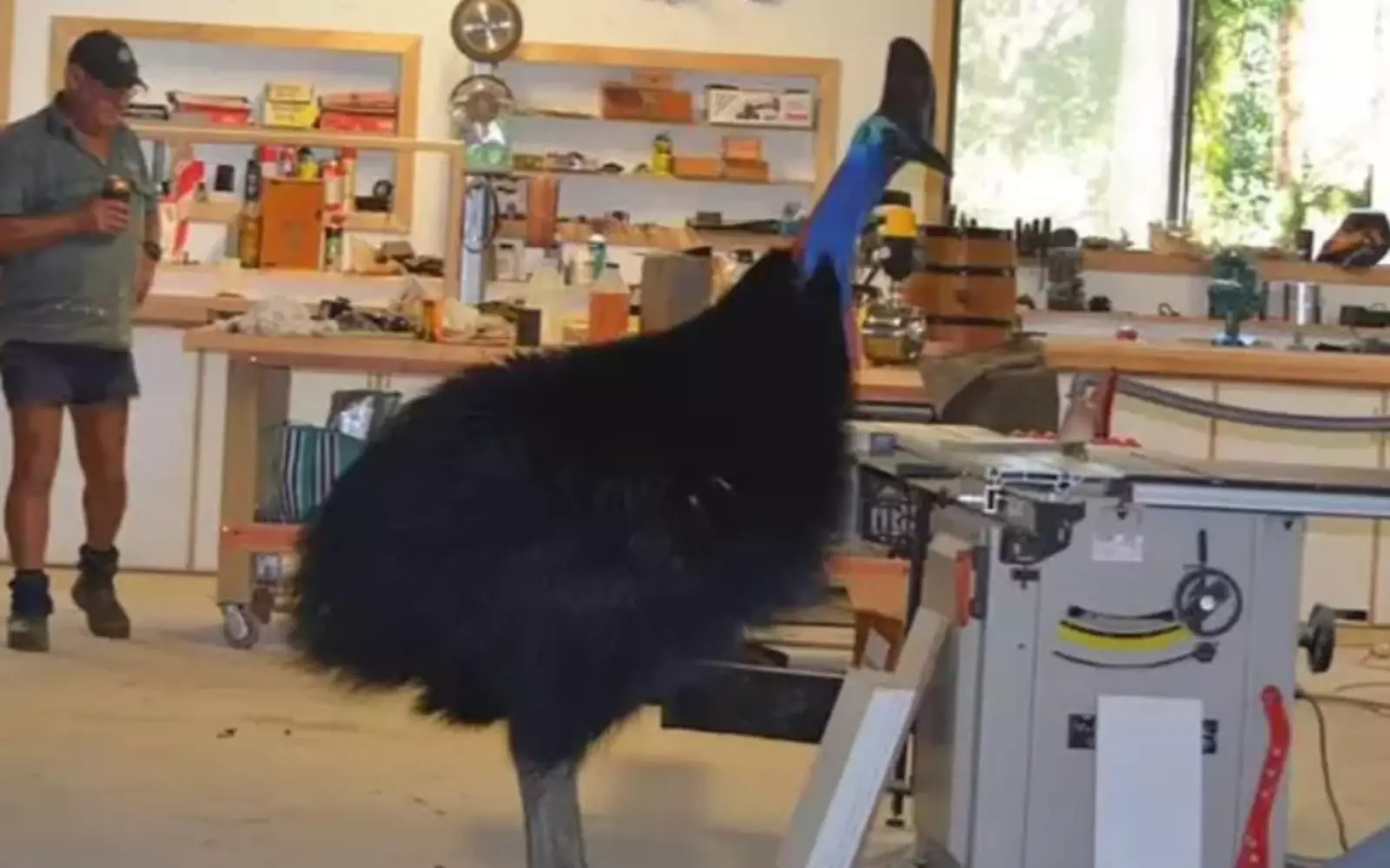 Тони Флеминг — плотник из Джулаттена (Австралия) на пару минут заглянул в свою мастерскую во время празднования юбилея жены и обнаружил там незваного гостя. Им оказался взрослый казуар — самая опасная в мире птица.