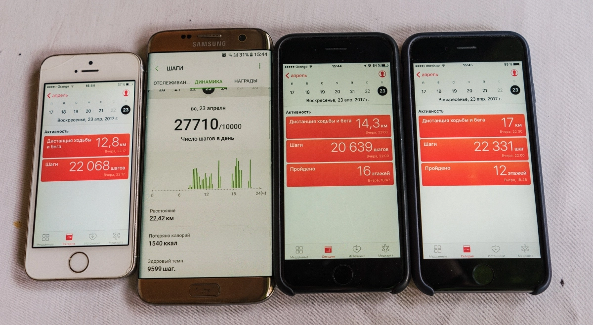 При отеле была прекраснейшая подземная парковка, так что паника, что при парковке нашего авиалайнера будет полное фиаско не оправдалась. На обеде случайно решили сравнить шагометрные достижения. Вроде вместе ходили, а показания вон как скачут, причем хрен поймешь у кого самый верный результат.