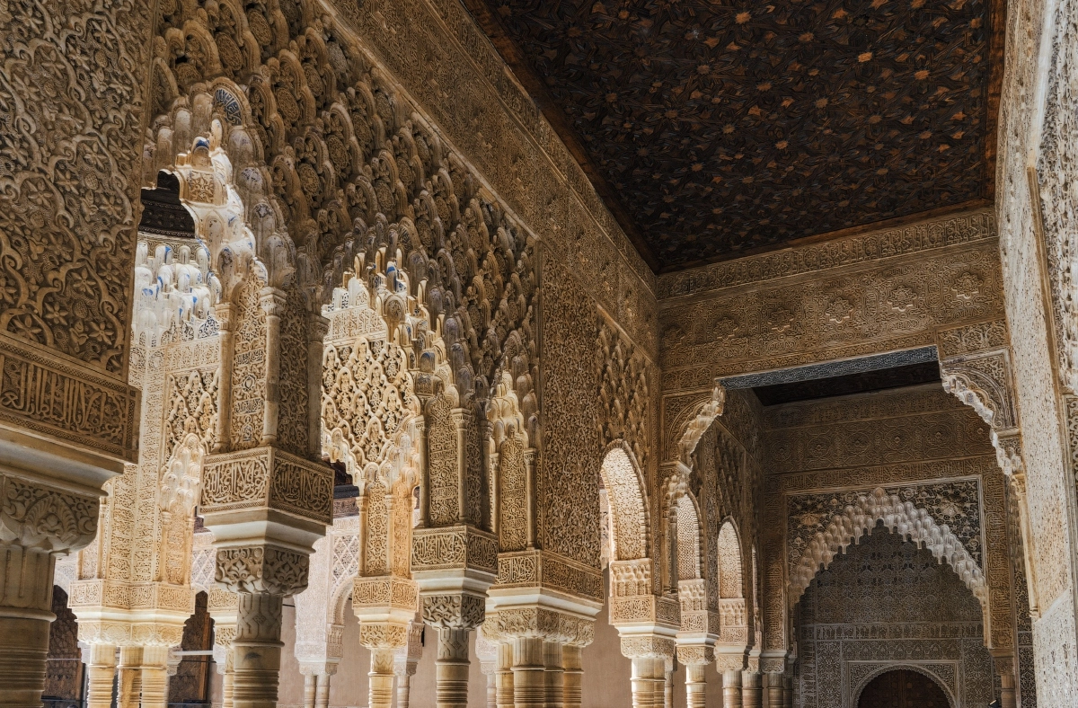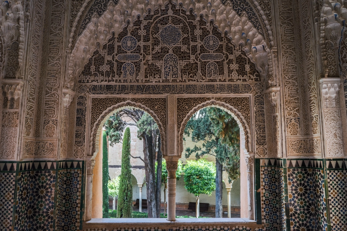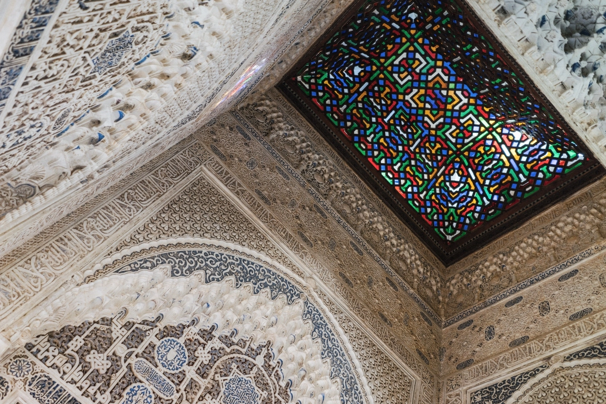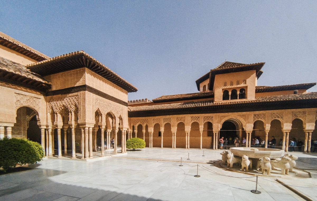 Время X, мы внутри. И вроде пускают ограниченное количество туристов, но все равно толпы. Что удивительно, учитывая как трудно достать билеты, я по наивности полагал хотя бы отсутствие давки. Нам не привыкать, активно работаем локтями и наслаждаемся красотами резиденции мусульманской династии Насридов 13го века. Поглазеть тут есть на что.