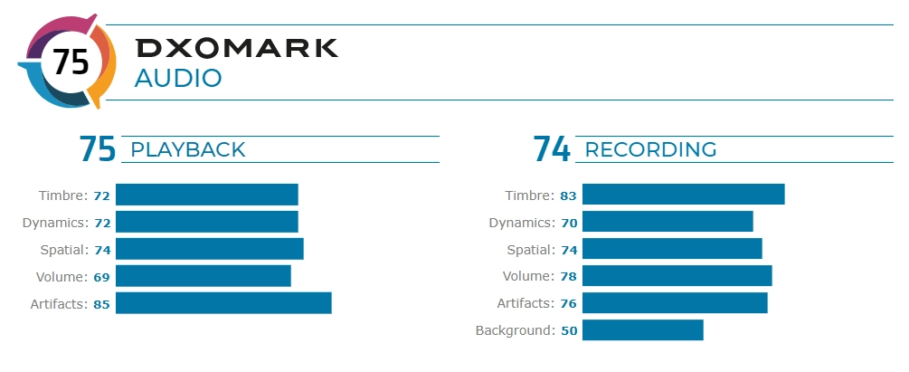 В тесте DxOMark Audio Asus ROG Phone 3 набрал в общем зачете 75 баллов. Отдельно за воспроизведение и запись он набрал 75 и 74 балла соответственно. Лаборатория отдельно отмечает, что новинка стала лучшим смартфоном на рынке по записи звука. Этому способствовали расположенные на корпусе четыре микрофона. За воспроизведение звука отвечают два фронтальных стереодинамика, которые получили поддержку технологии Dirac Research. DxOMark отметила качество басов, громкость выдаваемого звука и хороший тональный баланс.