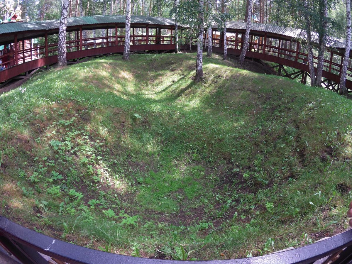 Позднее туда бросили гранаты. Сейчас спуск засыпался и порос травой, но когда на этом месте решили строить храм, исследования геодезистов показали, что заброшенный рудник покрывают лишь 80 сантиметров дерна. Поэтому храм возводят в сотне метров от места расправы.