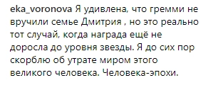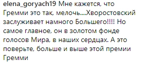 «К сожалению, мир не совершенен, совершенство есть в искусстве, сам Дмитрий стремился к совершенству, и признание его таланта и индивидуальности и мастерства — вот награда всем нам, живущим!!! Любим, помним, скорбим!!!», «Дмитрий Хворостовский — наш Победитель навсегда!!», «Ярмарка тщеславия! Нам всем ясно, кто ВЕЛИКИЙ, а кто так — вышел погулять! ХВОРОСТОВСКИЙ И ОРБЕЛЯН — ЭТО ГЕНИИ, ТВОРЦЫ, их вклад в мировое оперное искусство бесценен!»отреагировали пользователи Сети.