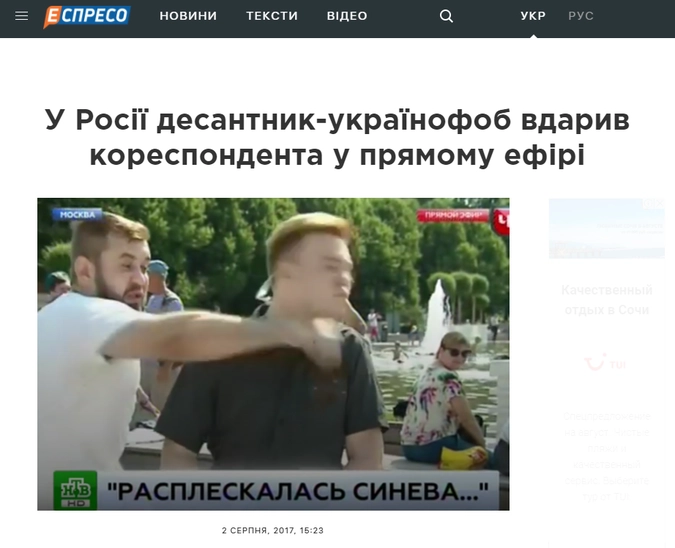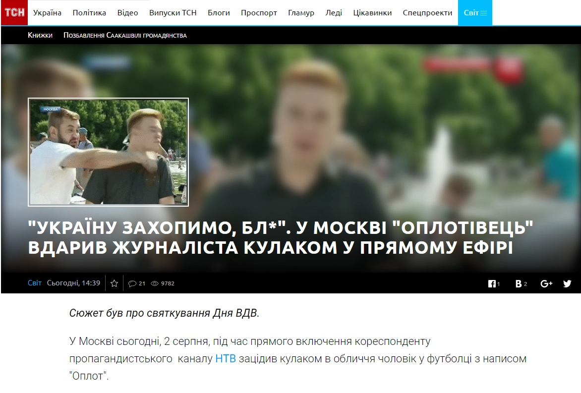 Внимательные зрители рассмотрели на футболке надпись «Оплот» — это название патриотической организации из Донбасса. Учитывая, что перед нападением на журналиста Колобок кричал о «захвате Украины», в Сети разразились яростные дискуссии на политические темы, а сам ролик стал «лакомым кусочком» для украинской прессы.
