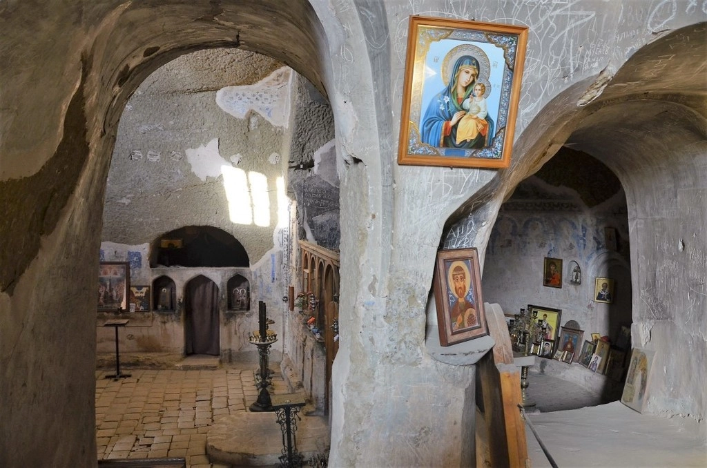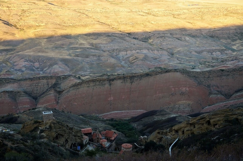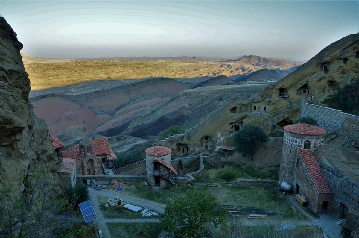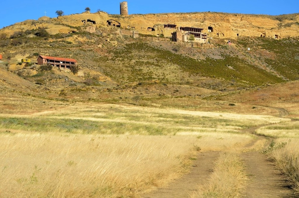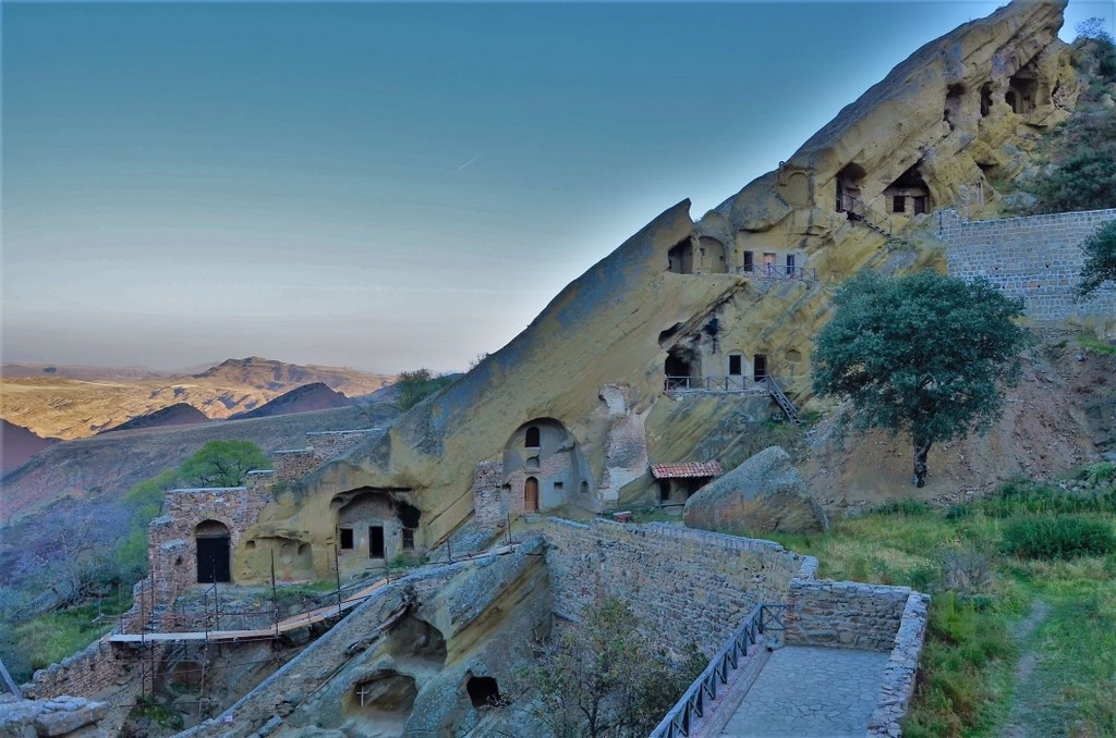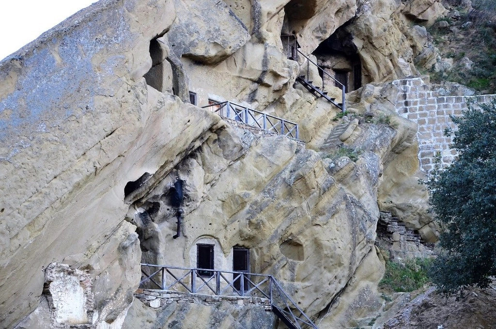 Столетиями грузинские православные монахи несли там службу, пока вдруг Азербайджан не заявил, что это их территория и монахи убирайтесь. Сейчас там пост азербайджанской армии, и эти 100 метров вам не пройти никак. Они превратили пещеры в укрепленный пункт и стоят там с оружием. Не знаю, какие у них указания сверху, но с учетом неуважения к чужой культуре и чувствам, а также к жизни человеческой (включая собственную) они легко пальнут в вас из автомата. Поэтому осторожно.