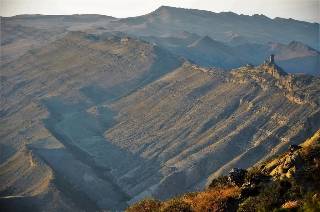 Вот вид на восток, и если присмотреться, то на вершине горы вы заметите небольшую вышку.