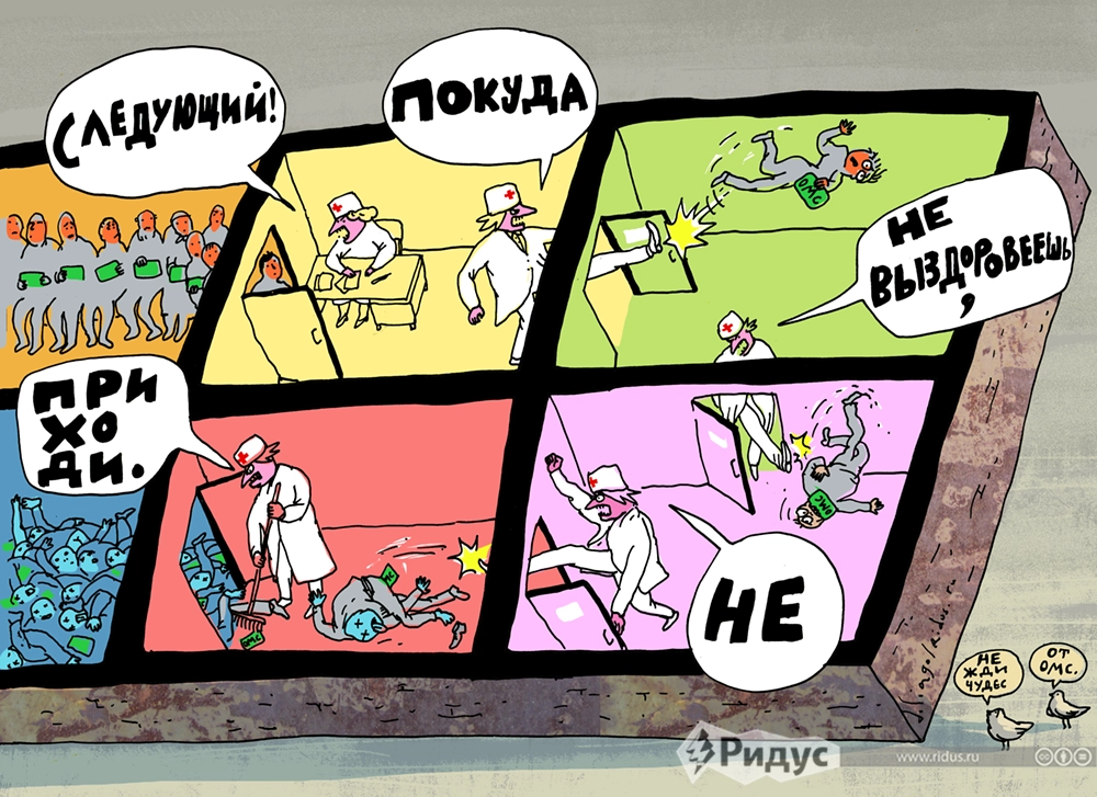 Уже на этом этапе становится ясным, что рассчитывать на бесплатную медпомощь в ситуациях, не терпящих отлагательства, совершенно бессмысленно: за три недели любая ангина, или с чем там к терапевтам обращаются, пройдет сама по себе. А с аппендицитом или, не дай Бог, инсультом больной до конца своей очереди элементарно не доживет. Гоголь соврать не даст.