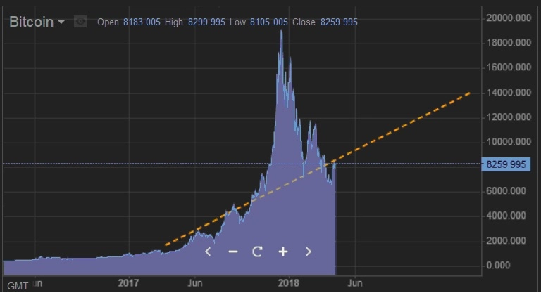 При текущей динамике, если не учитывать именно прошлогодний ноябрьский/декабрьский всплеск спроса, вызванный криптохайпом, а не реальной оценкой ситуации, уже к концу текущего года биткоин будет вновь стоить около 4000 долларов.