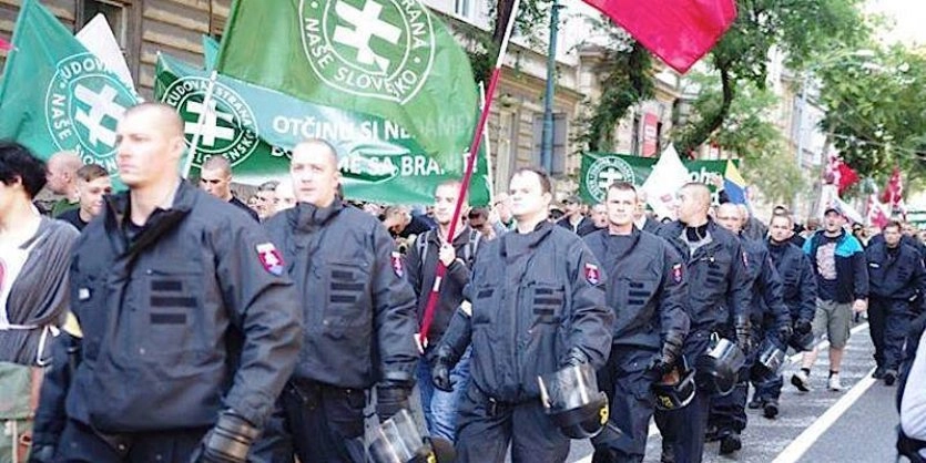 Полиция присоединилась к правым манифестантам в марше против исламизации Словакии.