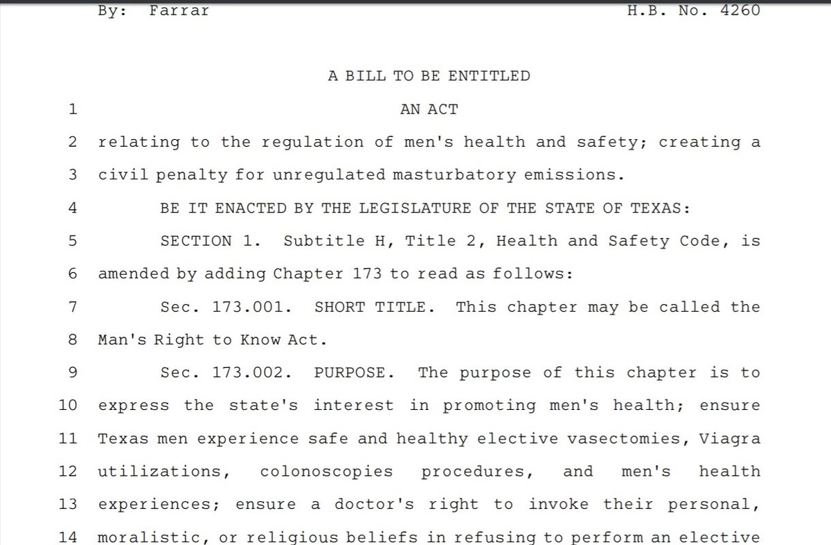 В Америке много тупых законов, но недавний Bill 4260, который предложила в штате Техас Джессика Фаррар, превзошел их все.