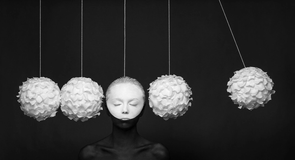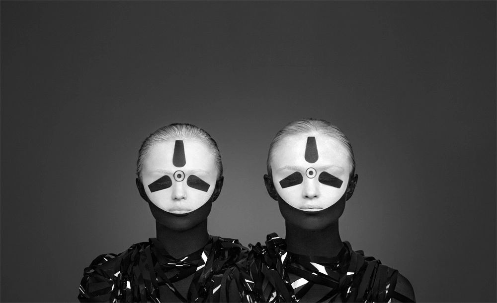 «Пришла в голову идея сделать вот такие черно-белые снимки, где будет главенствовать форма: лицо модели отражает форму того, что на ней будет нарисовано. Сделали пару съемок, результат понравился, и мы подумали: может, из этого сделать какую-то серию? Подумали, какие есть черно-белые известные символы и формы, которые приходят на ум», — рассказывает о начале своей карьеры фотохудожника Александр.