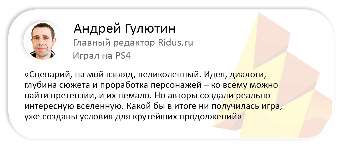 Спасибо вам большое за комментарий! Да, я тоже играл на максималках. Игра очень красива. В плане некстгена - ну, это предмет для дискуссии, как мне кажется, но в целом согласен с вами, игровой мир очень крутой.
