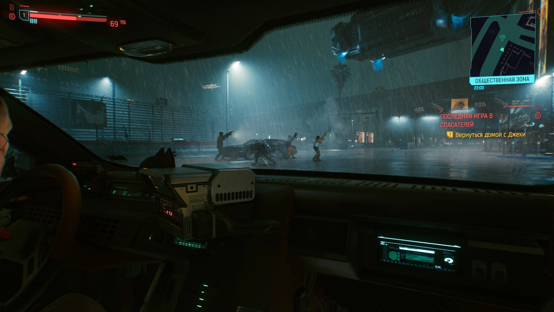 Такие мелочи нисколько не портят впечатления от геймплея. Как уже было сказано выше, игра надежно вцепляется в игрока и не выпускает его ни на секунду: даже, если вы просто прогуливаетесь по улице Найт-сити, что-то обязательно произойдет. Так, можно приехать на сюжетный квест раньше положенного, прогуляться вокруг клуба и внезапно спасти пару жизней. Или ввязаться в перестрелку. Или стать свидетелем разборки между местными бездомными и «держателями» района.
