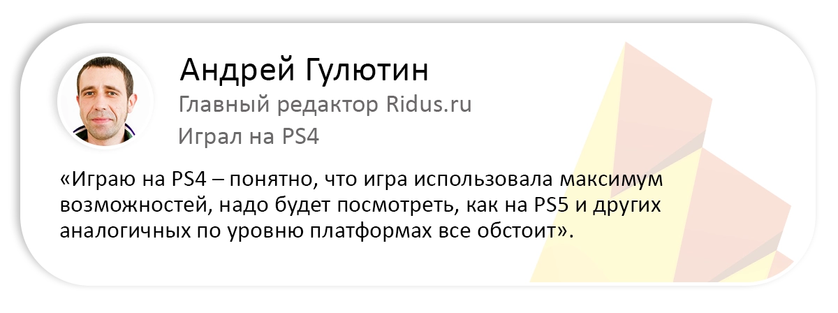 Очень грамотный обзор и все по полочкам и все правильно. Разве что с оценкой графики я не согласен. Для меня это самый настоящий некст ген. Я обладатель железа, которое тянет игру на максималках с RTX и я ни разу не пользовался фаст тревелом в игре, на столько красивая картинка, что не хочется отрываться и любоваться.