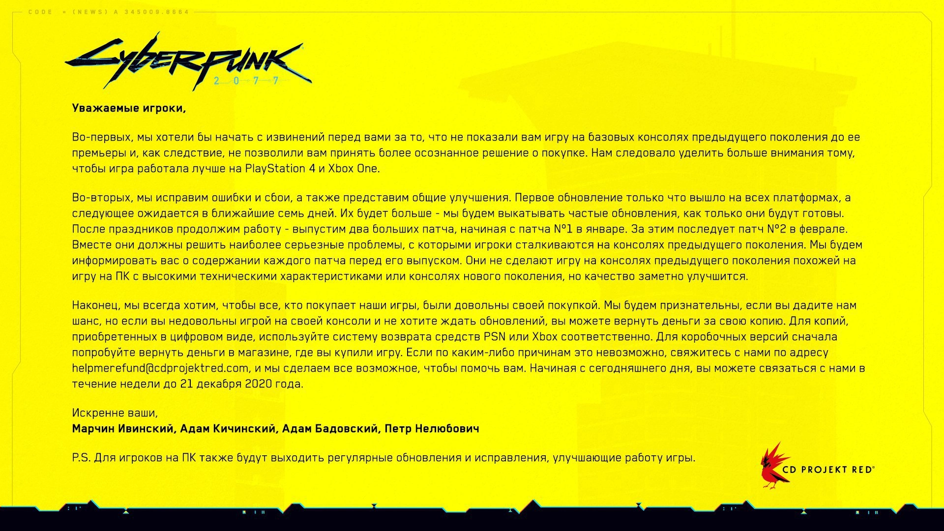 Фанаты «Ведьмака 3» получили возможность повторить свой уникальный и незабываемый опыт с «Киберпанком»: игра получила кошмарную оценку в 2 балла из 10 на метакритике, но только в одном сегменте — у пользователей консолей, причем далеко не следующего поколения. И причиной тому стало то, что у этих пользователей игра просто не запустилась.