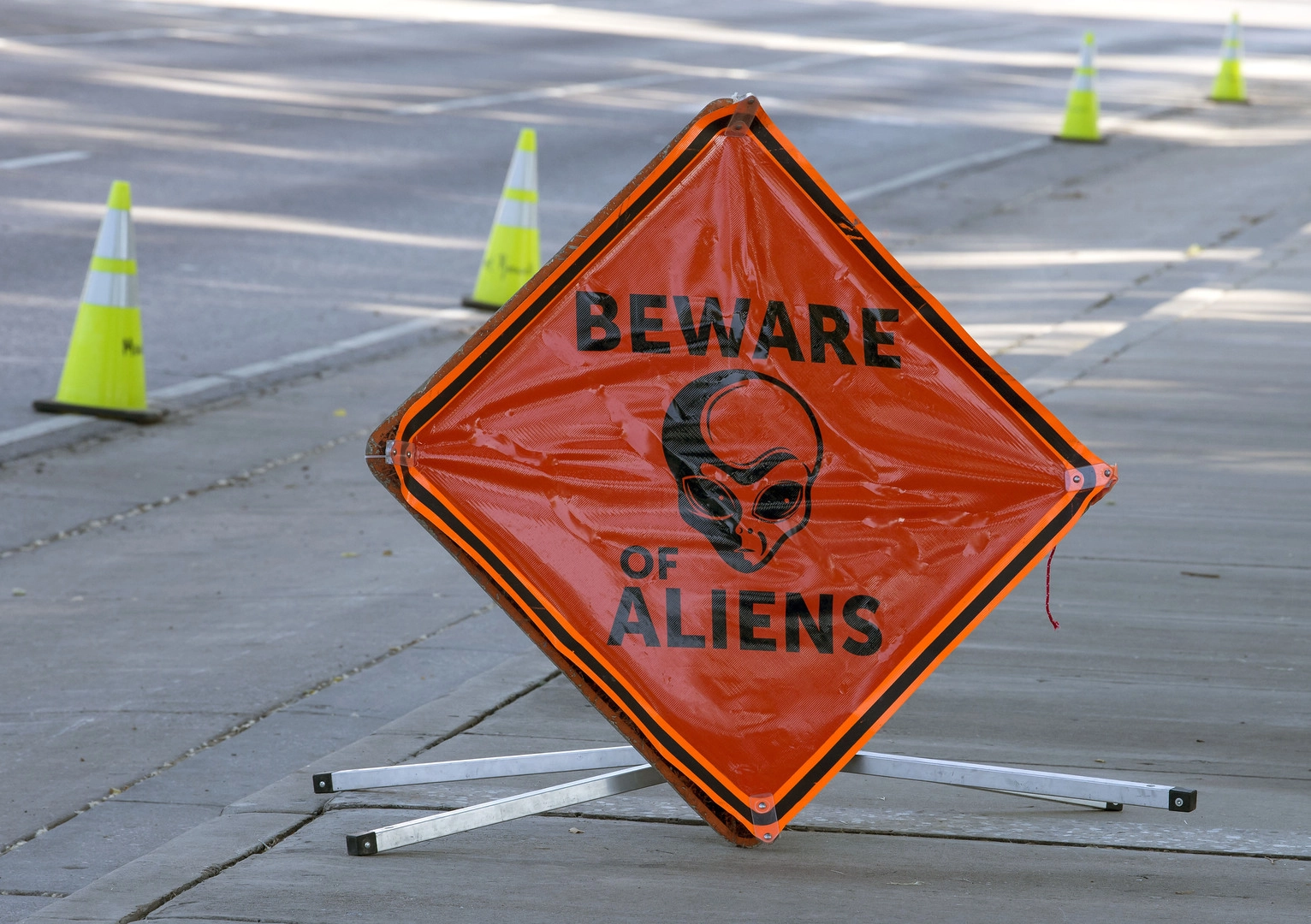 Американский город Розуэлл, штат Нью-Мексико, похож на город из научно-фантастического фильма: уличные фонари украшены головами инопланетян, на баннерах изображены космические корабли, даже здание McDonald's напоминает форму летающей тарелки.