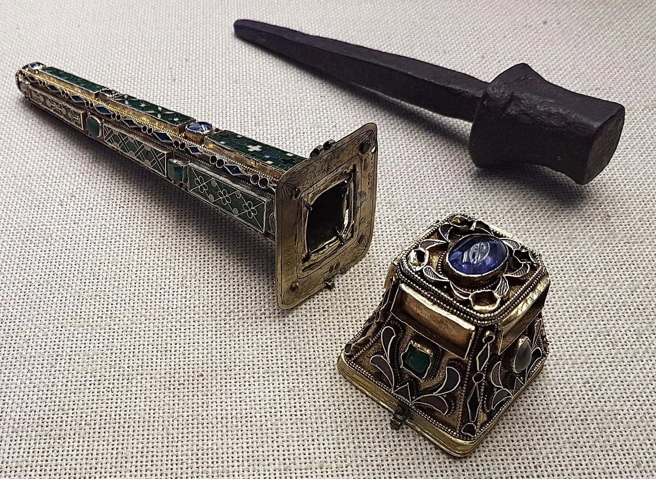 Гвоздь Креста Господня (средневековый фейк, конечно) и его драгоценный реликварий (оттоновская эпоха). Трирский собор.