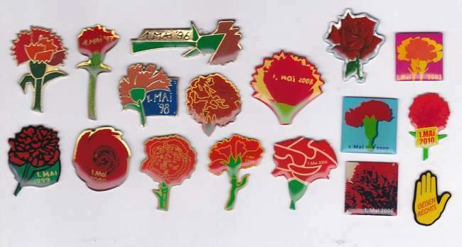 А вот тут разные варианты австрийских первомайских значков, гвоздика для них не обязательна.