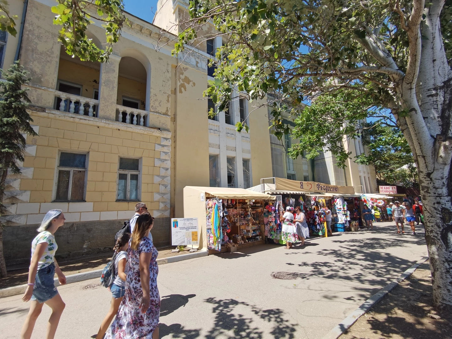 Вместе с тем прекрасные здания Феодосии, которыми город по праву может гордиться, медленно ветшают и обрастают ларьками, в которых торгуют всякой всячиной.