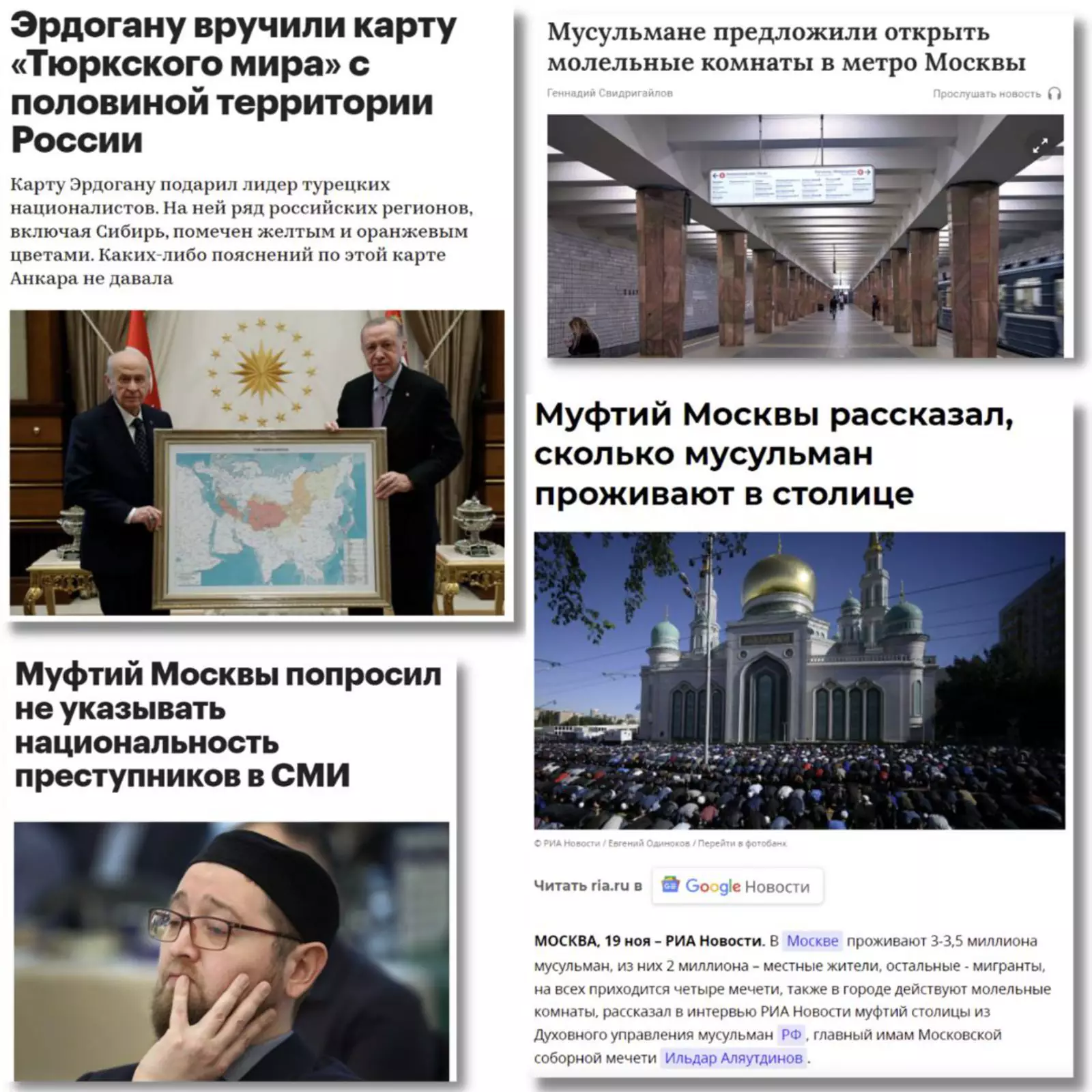 В Москве не проживает 3 — 3,5 млн мусульман. Не нужно серьёзно воспринимать источник в виде этнических и религиозных лоббистов. Они специально преувеличивают цифры, чтобы выступать как будто бы от большой силы. Азербайджанцы, например, любят говорить, что их миллион в Москве.