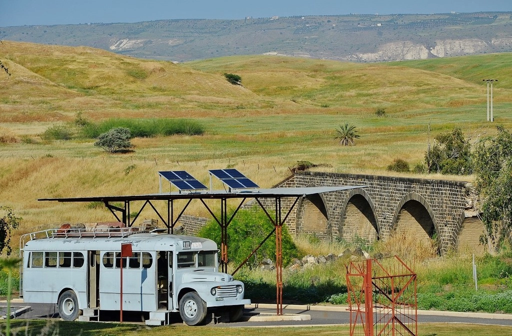 Если приехать в правильное время, то вас пропустят непосредственно в пограничную зону и вы сможете подойти вплотную к мосту, потрогать старинные вагоны и залезть в автобус. Это в некотором роде туристическая бутафория, но именно так и выглядел пограничный пункт незадолго до первой арабо-израильской войны 1948 года.