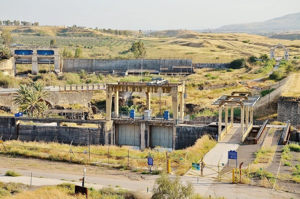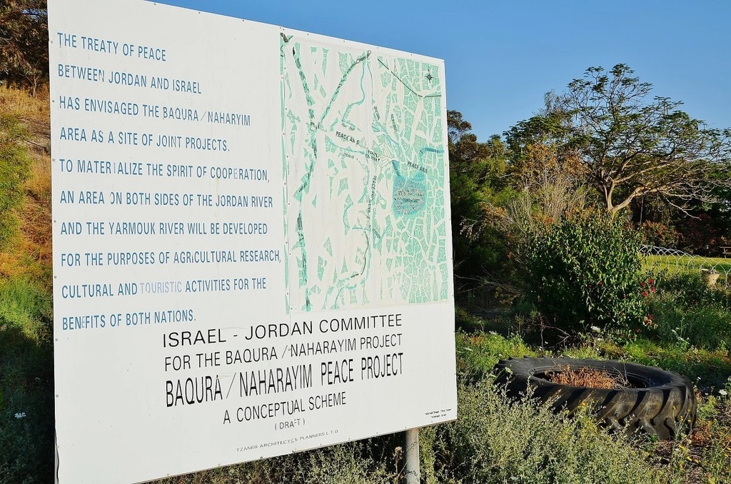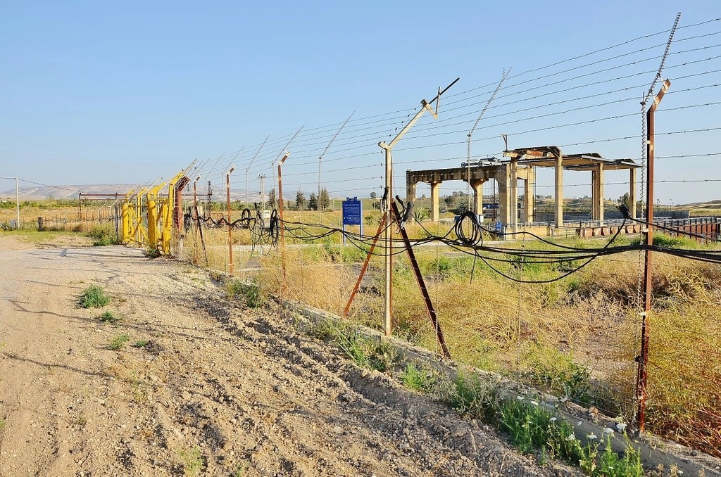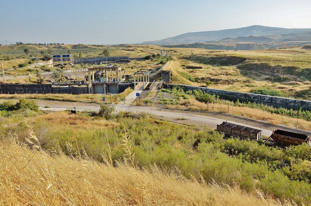 Подъезжаем к ГЭС в Нахараиме и справа от нас пограничный забор с Иорданией. Сегодня станция оказалась прямо между Израилем и Иорданией, преимущественно в нейтральной 500-метровой зоне между государствами. Вы можете ее посетить, вас пропустят прямо через эти желтые ворота, но в рабочие дни с 9 до 16. Заплатите 10 шекелей какого-то сбора и вперед! Оно того стоит, взгляните мой отчет оттуда пятилетней давности Гидроэлектростанция, перерезанная границей.