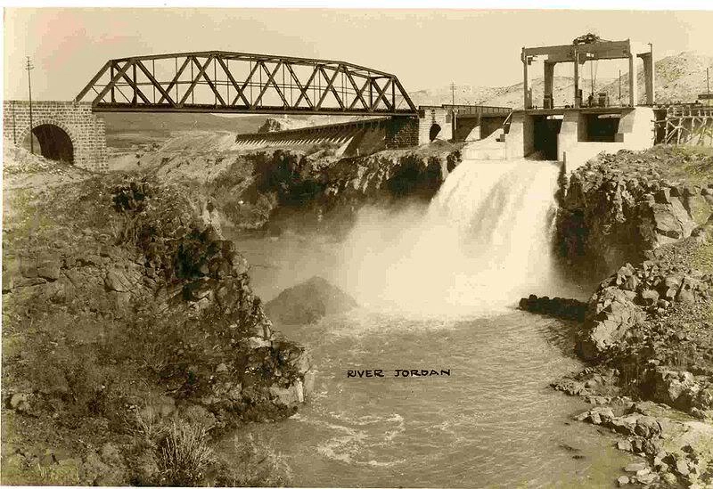 ГЭС в 1932 году, виден также железнодорожный мост через Иордан —