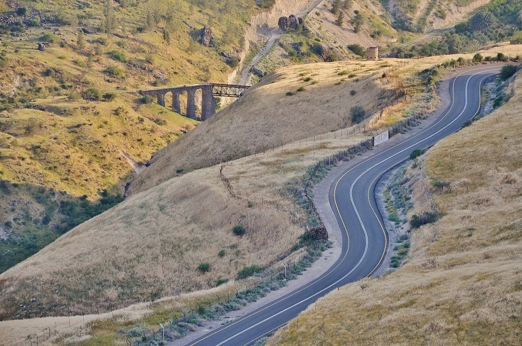 Мы едем дальше и поднимаемся на Голанские высоты, захваченные у Сирии в 1967 году. Внизу виднеется еще один из железнодорожных мостов, связывавших Палестину с Хиджазской железной дорогой. Он, как и все другие, был взорван в 1948 году и с тех пор не функционирует по назначению.