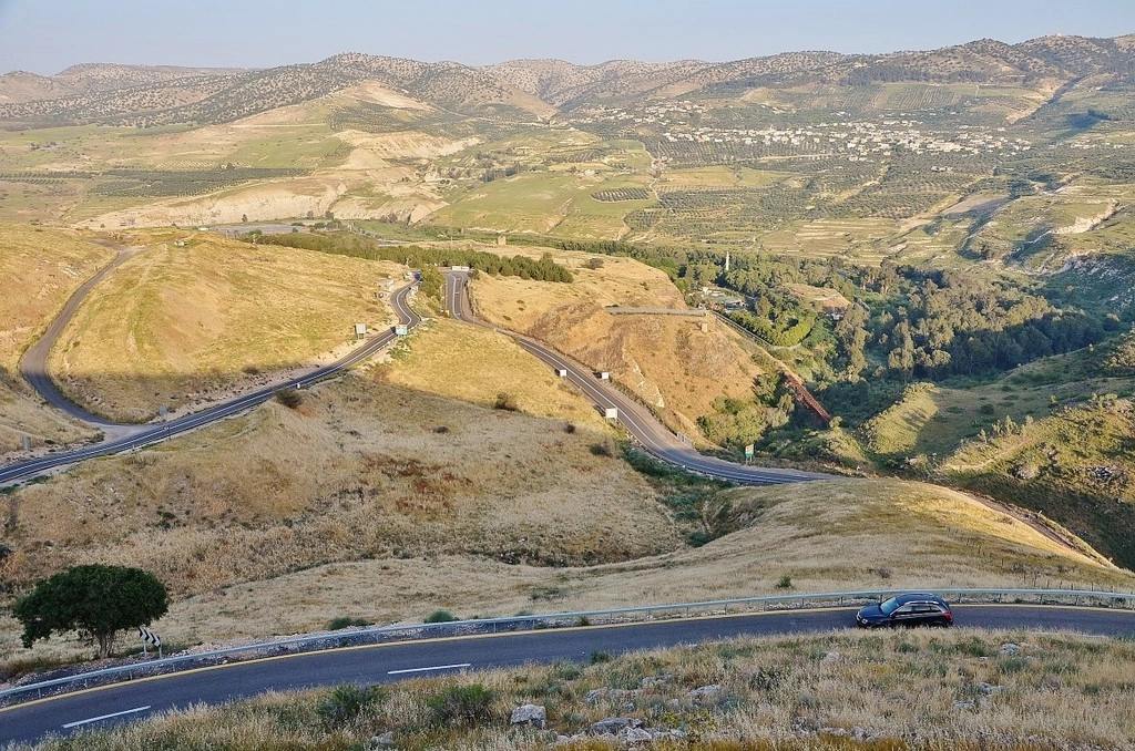 Севернее Бейт-Шеана дорога идет аккурат вдоль реки Иордан, являющейся границей Израиля и Иордании. Городок на заднем фоне это уже соседнее государство.