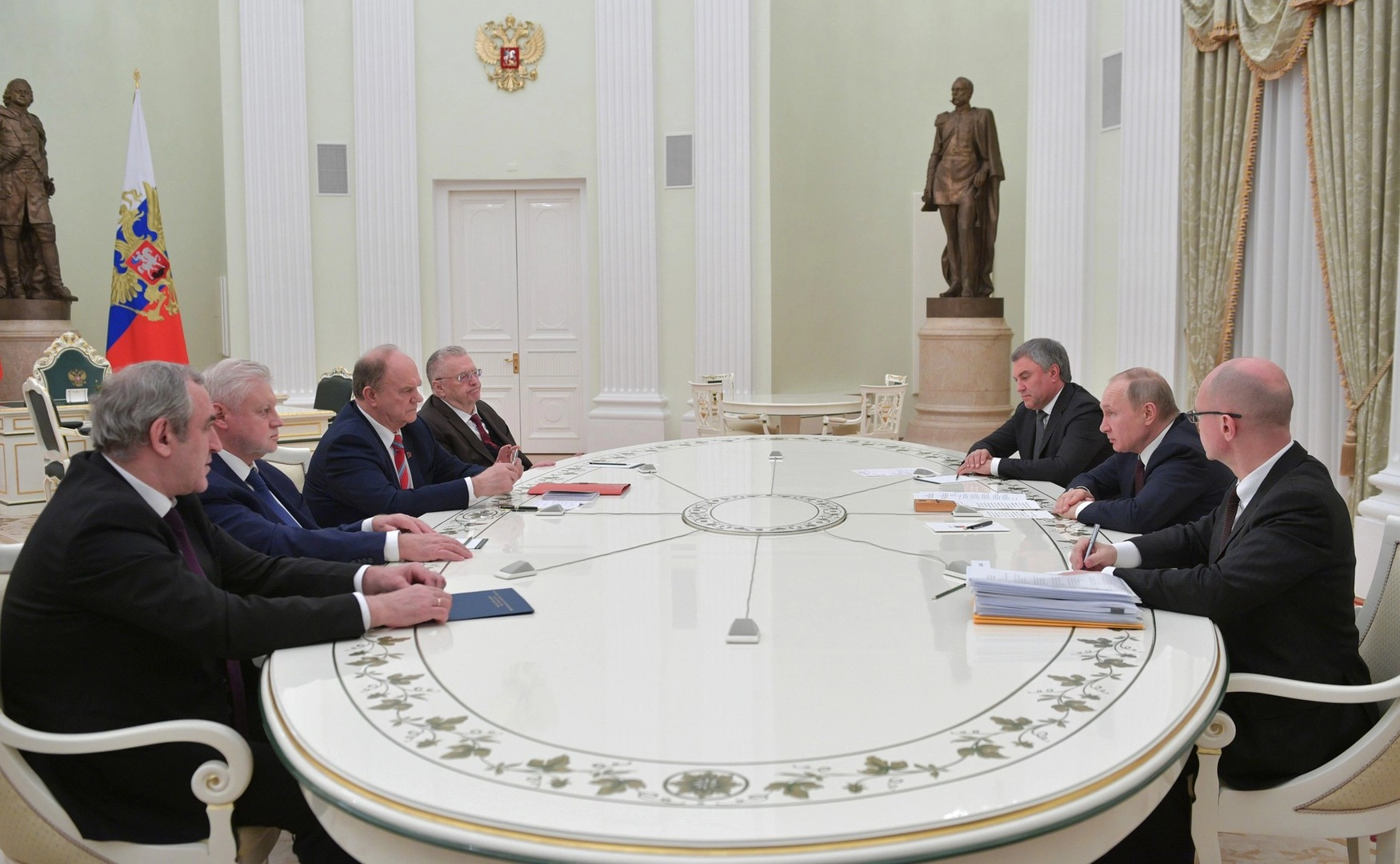 Встреча Путина и лидеров парламентских партий состоялась 5 марта. Российский лидер обсудил с народными избранниками предстоящие поправки в Конституцию, а также поблагодарил их за активное участие в процессе принятия этих поправок.