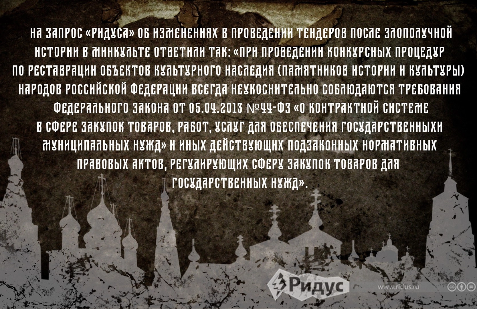 За прошедшие 25 лет Министерство культуры не озаботилось этим вопросом, пока не «клюнул жареный петух». На запрос «Ридуса» там ответили, что работа ведется в рамках исполнения поручения президента Российской Федерации
