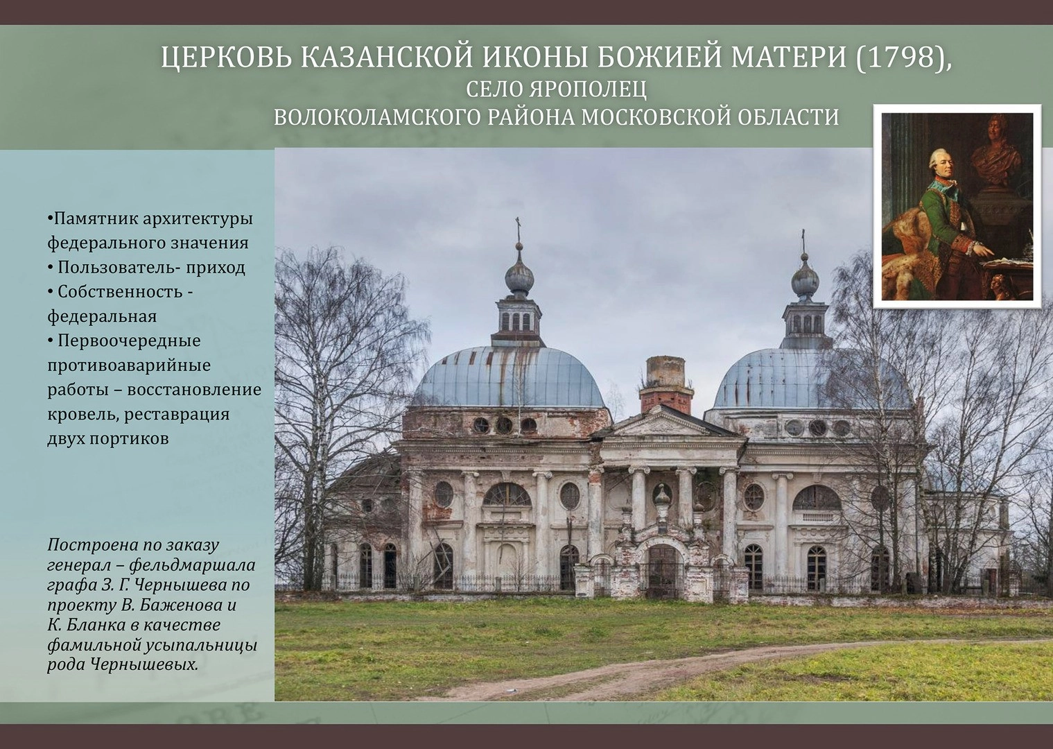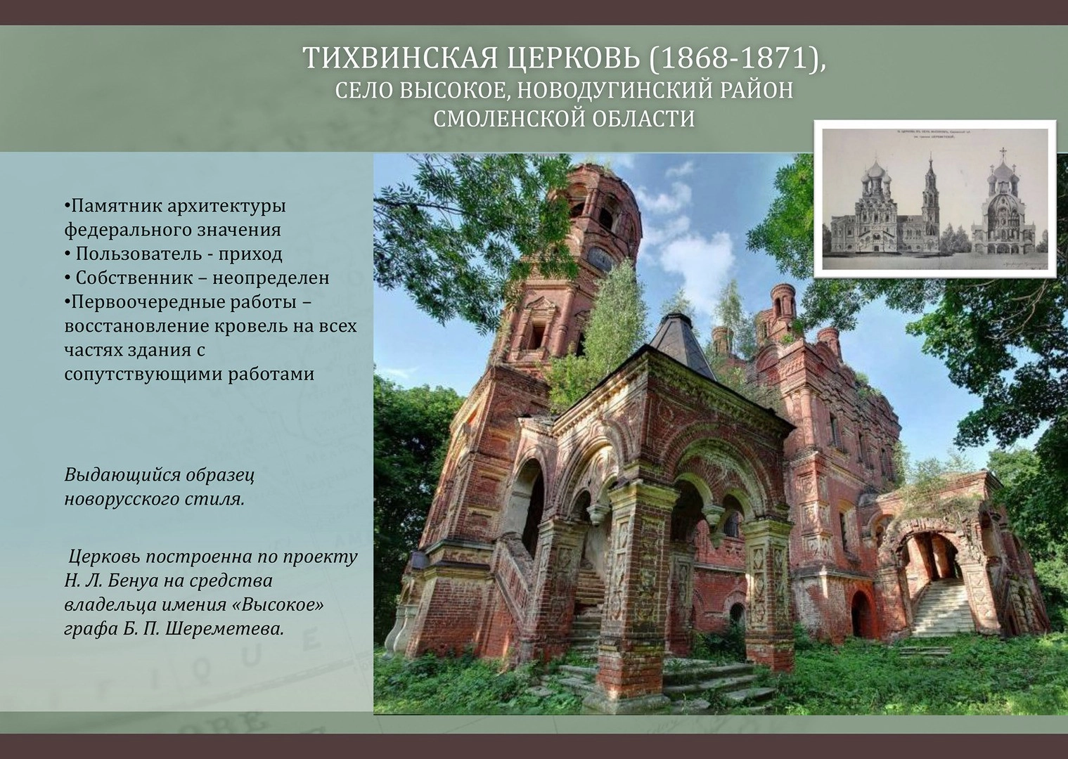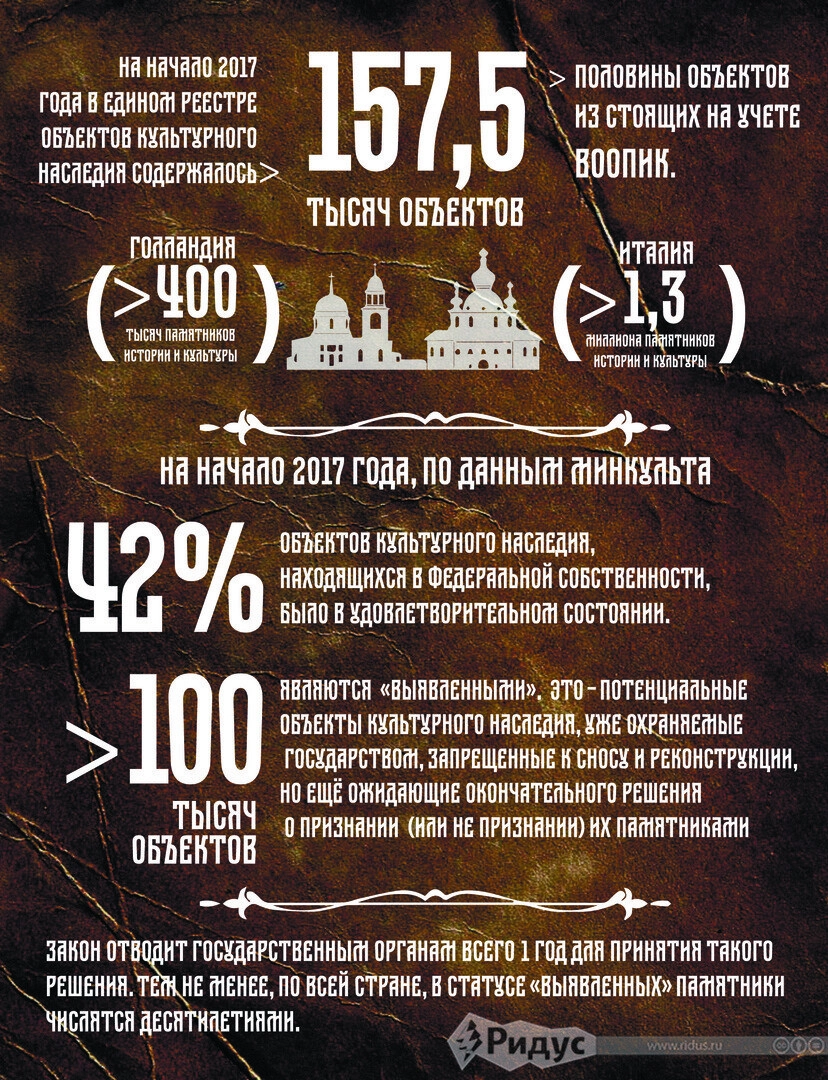 «Именно поэтому так важно, чтобы все памятники были должным образом занесены в реестр, получили охранную документацию, а, значит, и однозначные и четко определенные требования к его содержанию», — поясняет Демидов.
