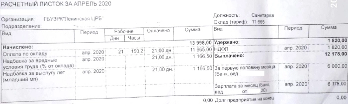Также Алексей Владимирович сообщил о возможном нарушении трудового кодекса РФ в части выплат заработной платы персоналу. По его словам, двум врачам приёмного отделения не полностью оплачивали дежурства весной 2020 года. Если раньше персонал работал, согласно дополнительному трудовому договору, по совместительству, то сейчас медработникам начисляются «стимулирующие выплаты». Главврач не принимает заявления от сотрудников о доплате за совместительство и начисляет стимулирующие в непропорциональном, по мнению медиков, объёме. Стоит отметить, что сейчас медсестрам и санитаркам, работающим на одну ставку, выплачивают зарплату на уровне МРОТ, а высококвалифицированным врачам — почти в два раза больше.