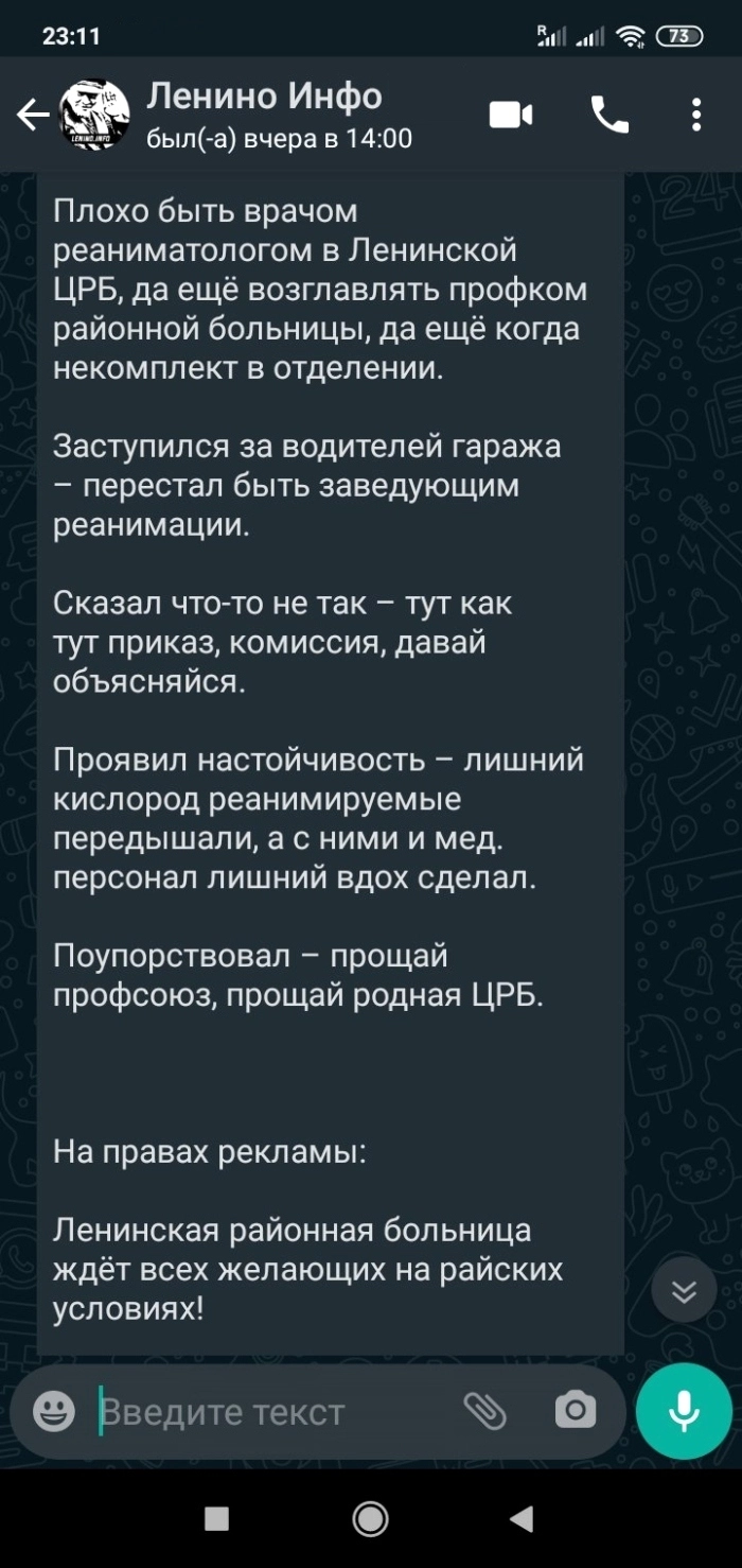 В Крыму набирает обороты скандал вокруг Ленинской центральной районной больницы. За публичную огласку проблем в медучреждении председателя профкома Алексея Тупоту привлекли к дисциплинарному взысканию по надуманному поводу и намекнули ему на возможность создания сложностей в работе.