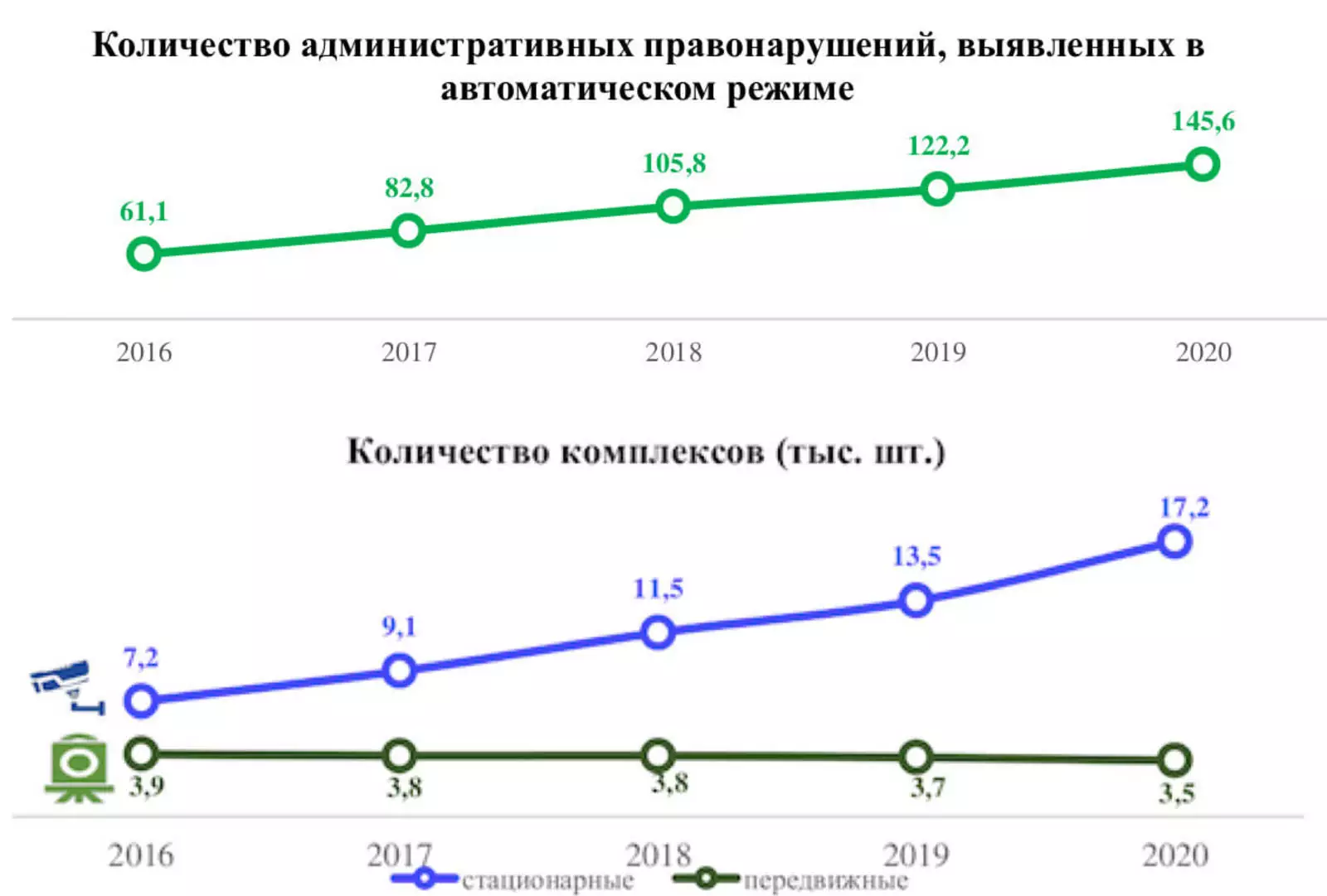 3. Тем не менее, Россия уже стала мировым лидером по числу штрафов и уверенно оторвалась от ближайших преследователей. В 2020 году автомобилистам выписали на 19,2% больше штрафов за нарушения ПДД, зафиксированных камерами, чем годом ранее. Это 145,5 млн штрафов с камер, в 2019-м этот показатель составлял 122,1 млн штрафов.