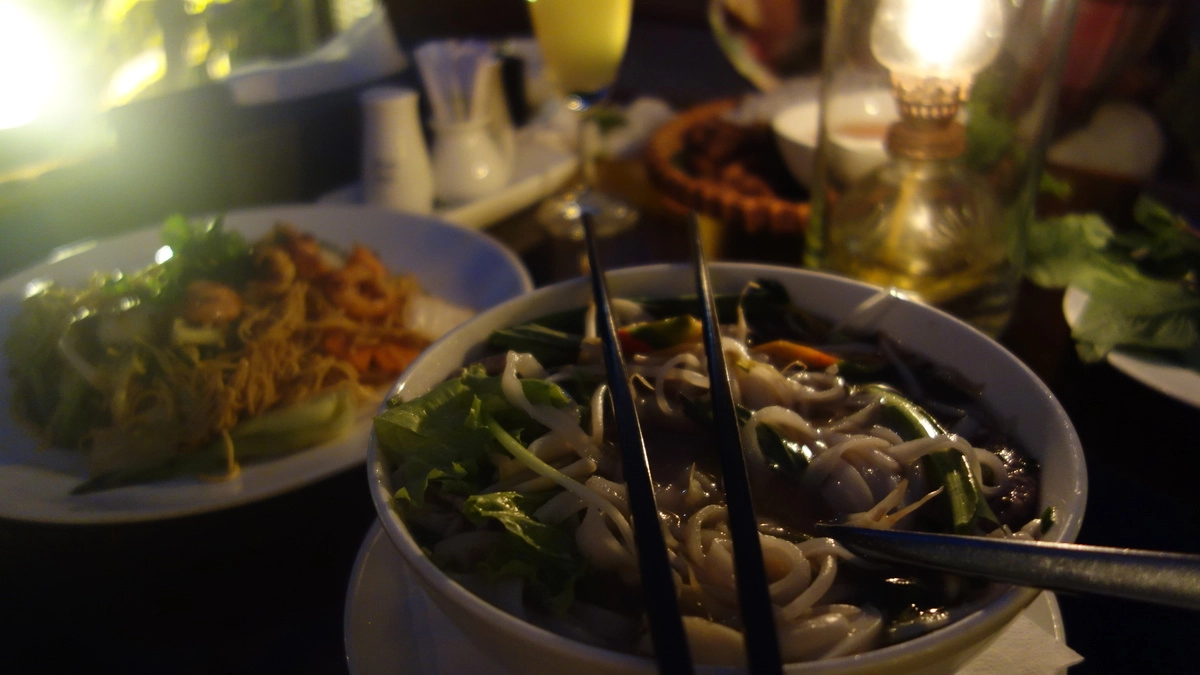 А вот еще одно национальное блюдо Вьетнама. Суп фо бо. Фо бо — это с говядиной, каноничный. Есть еще разновидности фо га (с курицей) и фо ка (с рыбой).