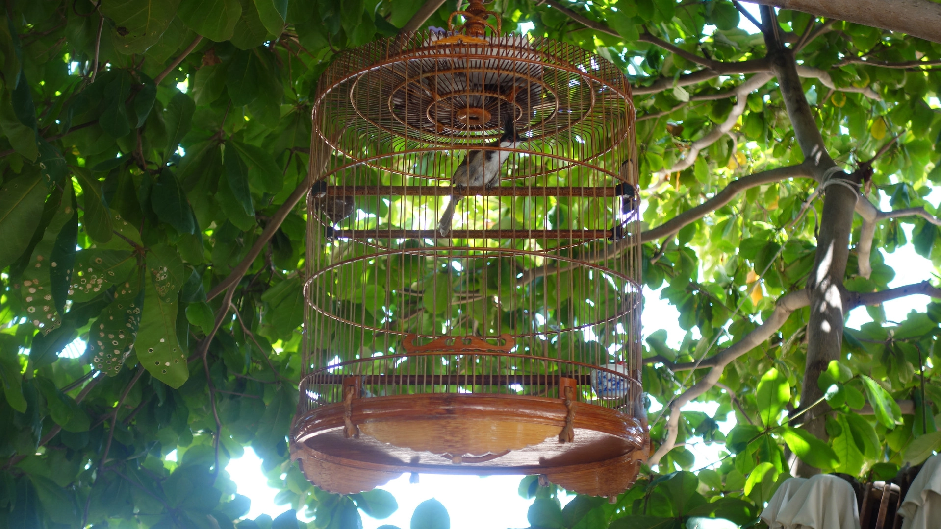 А еще у вьетнамцев повсюду птички есть. Без понятия, зачем — ну вот просто. Странное дело, но днем клетки открывают и птички резвятся в пальмах, а вечером снова в клетку возвращаются. Колдунство какое-то.