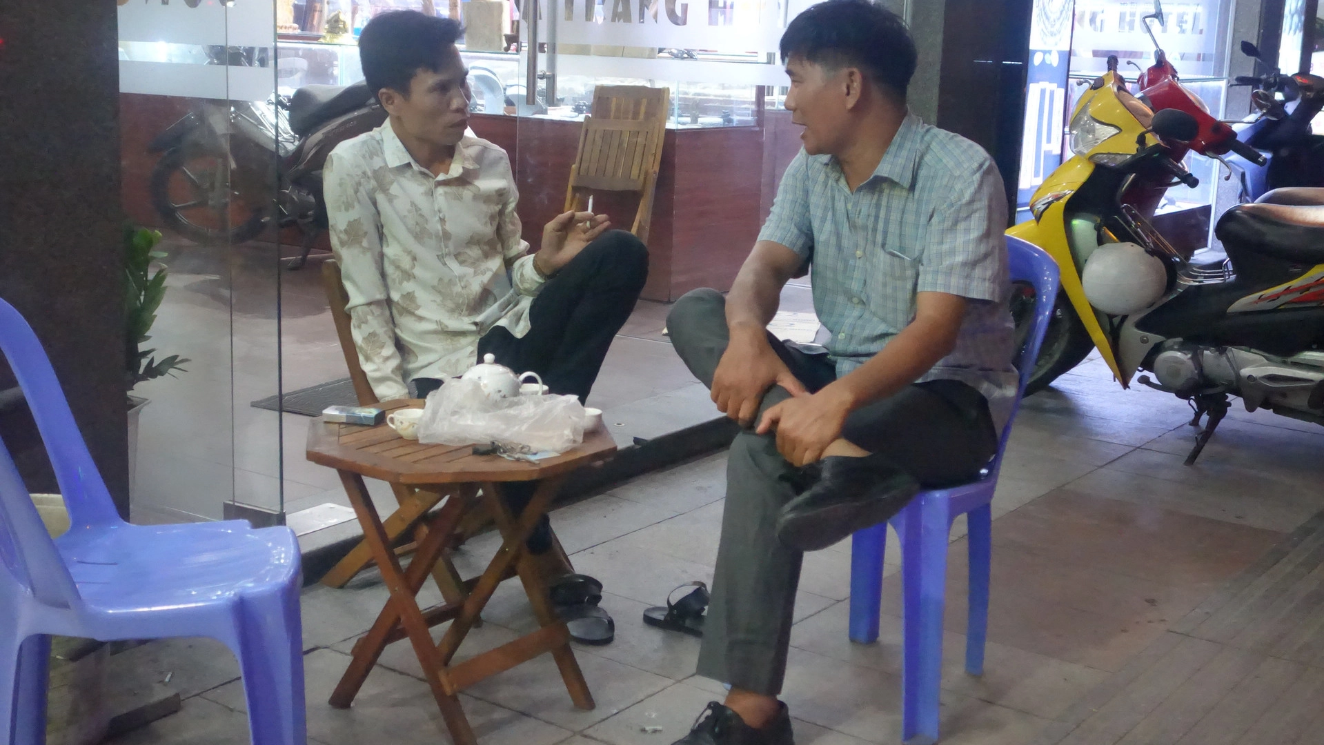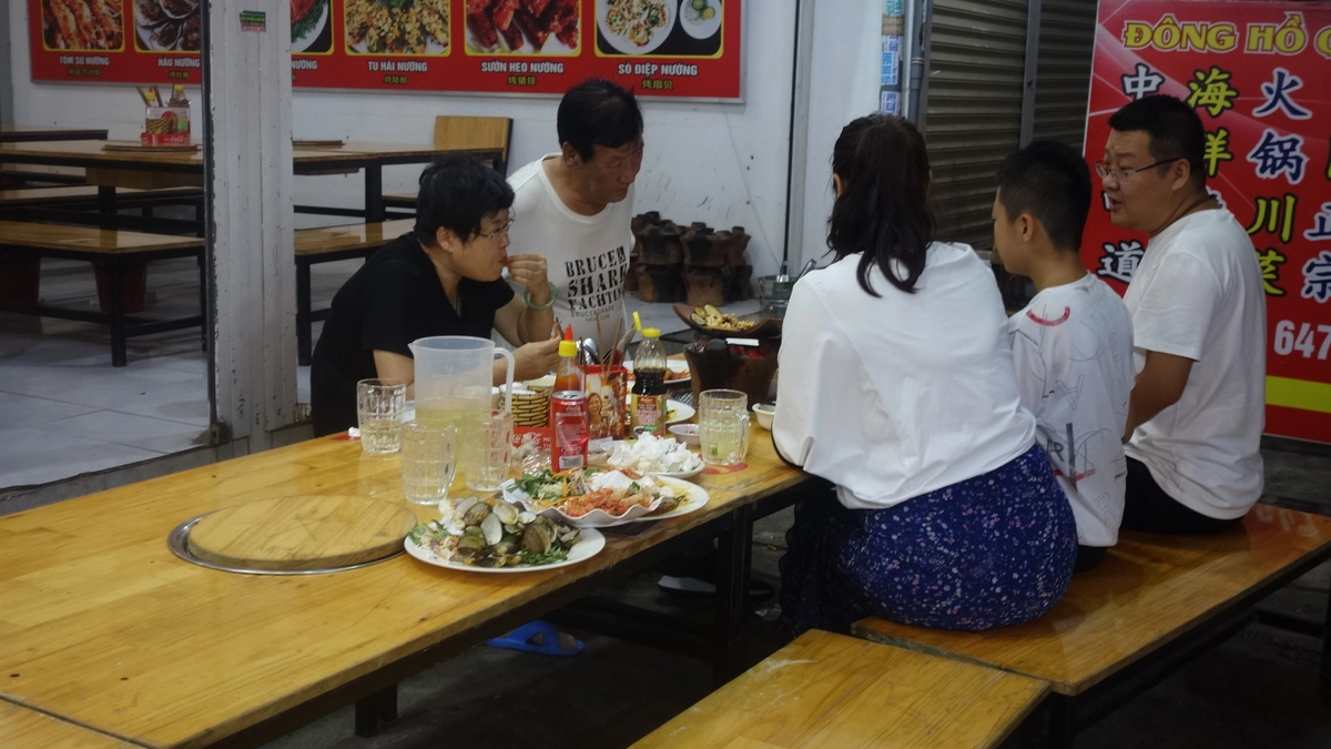 Что же говорить про самих вьетнамцев, то быт они ведут интересный и максимально ненапряжный. То есть, нередко, если покупателей нет, на улице можно застать такую картину. Торговцы сидят и мирно попивают чай.