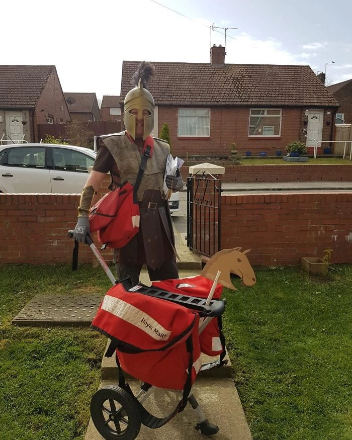 Почтальон из Великобритании Джон Мэтсон нашел необычный, но, безусловно, потрясающий способ развеселить людей во время карантина. Он снял свою привычную рабочую форму и начал доставлять почту в смешных костюмах, оставшихся в его шкафу после праздников.