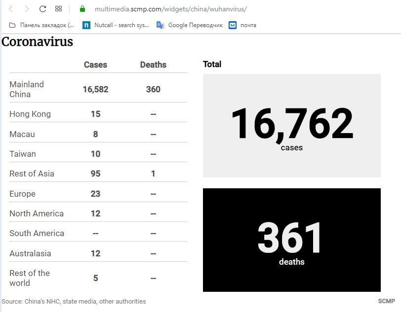 Число заразившихся вирусом 2019-nCoV в Китае выросло к утру 3 февраля до 16 762 человек. Новая болезнь уже унесла 361 жизнь. Об этом говорят аналитические данные Национальной комиссии по здравоохранению, государственных и других СМИ КНР, опубликованные South China Morning Post.