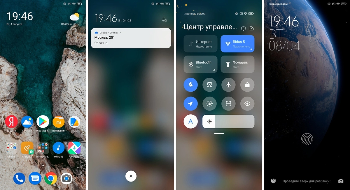 Также изменилась шторка уведомлений и настоек. Теперь, чтобы открыть уведомления, нужно свайпнуть от верхней левой части экрана. А, чтобы открыть центр управления, нужно свайпнуть от верхней правой части экрана. Да, это немного необычно, но привыкаешь буквально за пару часов. Сам центр управления преобразился, теперь он очень напоминает таковой в iOS. И это совсем неплохо, поскольку решение правда удобное и красивое. Да и Xiaomi никогда не стыдилась того, что копирует Apple. Таков уж менталитет китайцев.