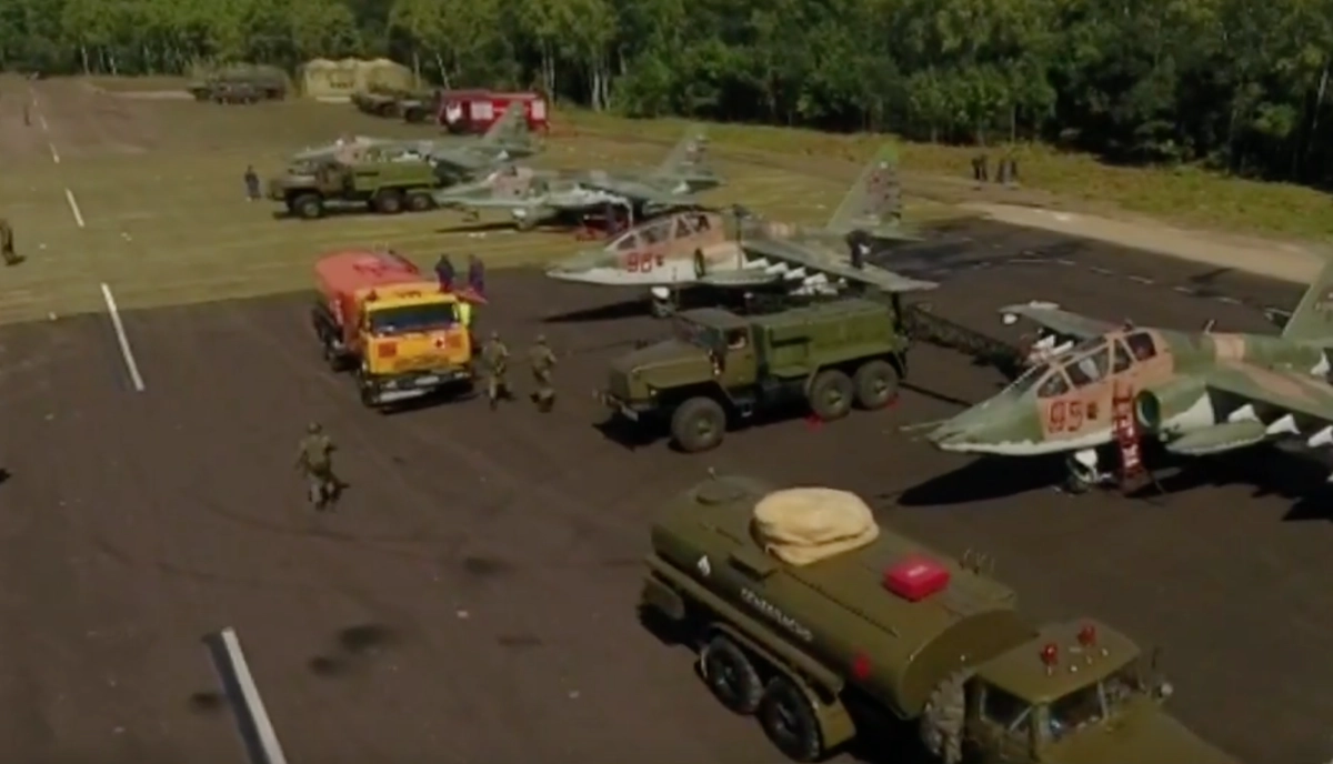 На трассе приземлились военно-транспортный самолет Ан-26, а также четыре штурмовика Су-25СМ.
