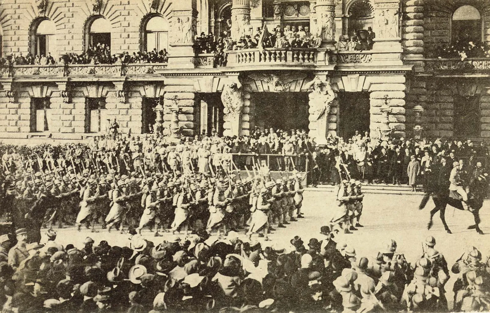 Кроме того, депутаты эльзас-лотарингского ландтага после низложения Вильгельма провозгласили себя «Национальным советом» — правительством всей области под руководством Евгения Риклина. Так что органов власти в революционном Страсбурге более века назад заседало не меньше, чем сейчас. 10 ноября на центральной площади Клебера состоялся массовый митинг, на котором секретарь профсоюза пивоваров, Иоганнес Ребхольц, провозгласил на Рейне власть трудящихся: