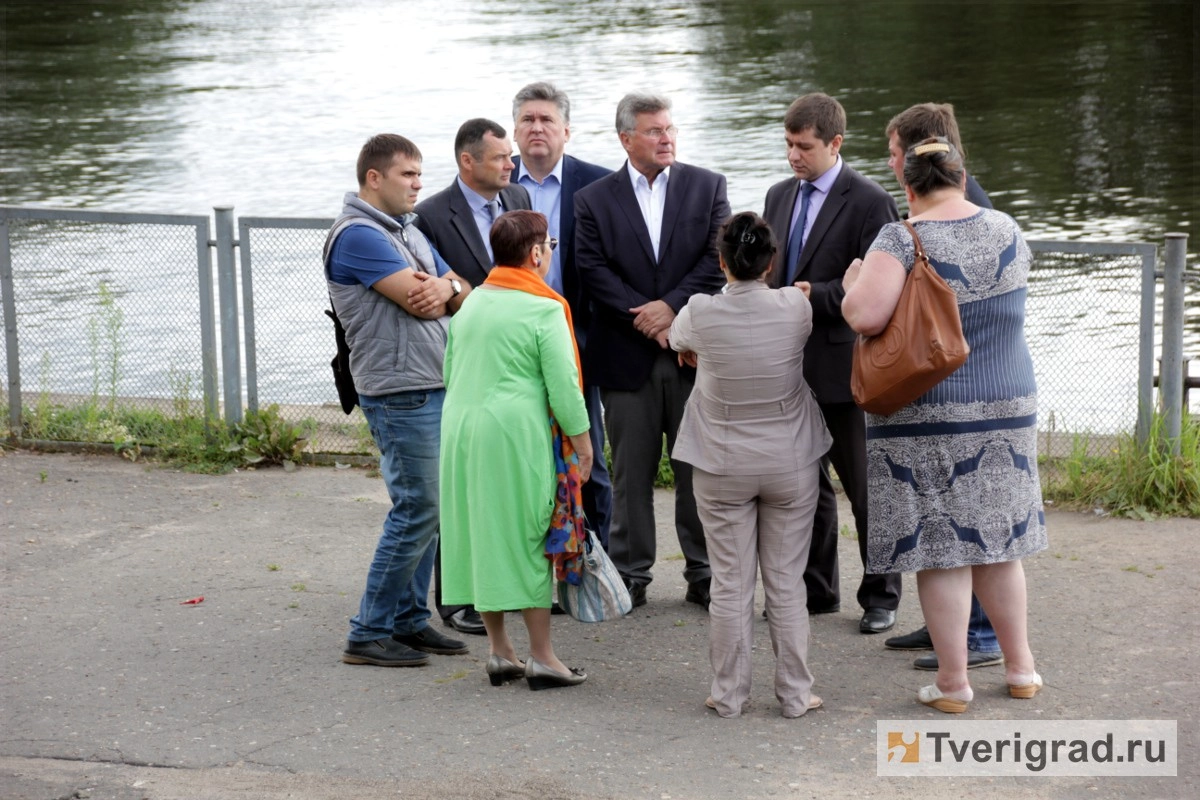 Татьяна Куюкина (в зеленом плаще), а также замгубернатора Твери Андрей Белоцерковский и другие чиновники утром 8 августа прибыли на место происшествия