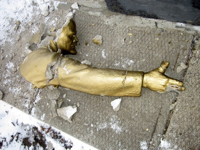Накануне вечером митингующие повалили памятник Ленину в центре Киева и разбили его молотками. Инцидент получил широкий общественный резонанс, а украинская милиция приступила к расследованию инцидента.