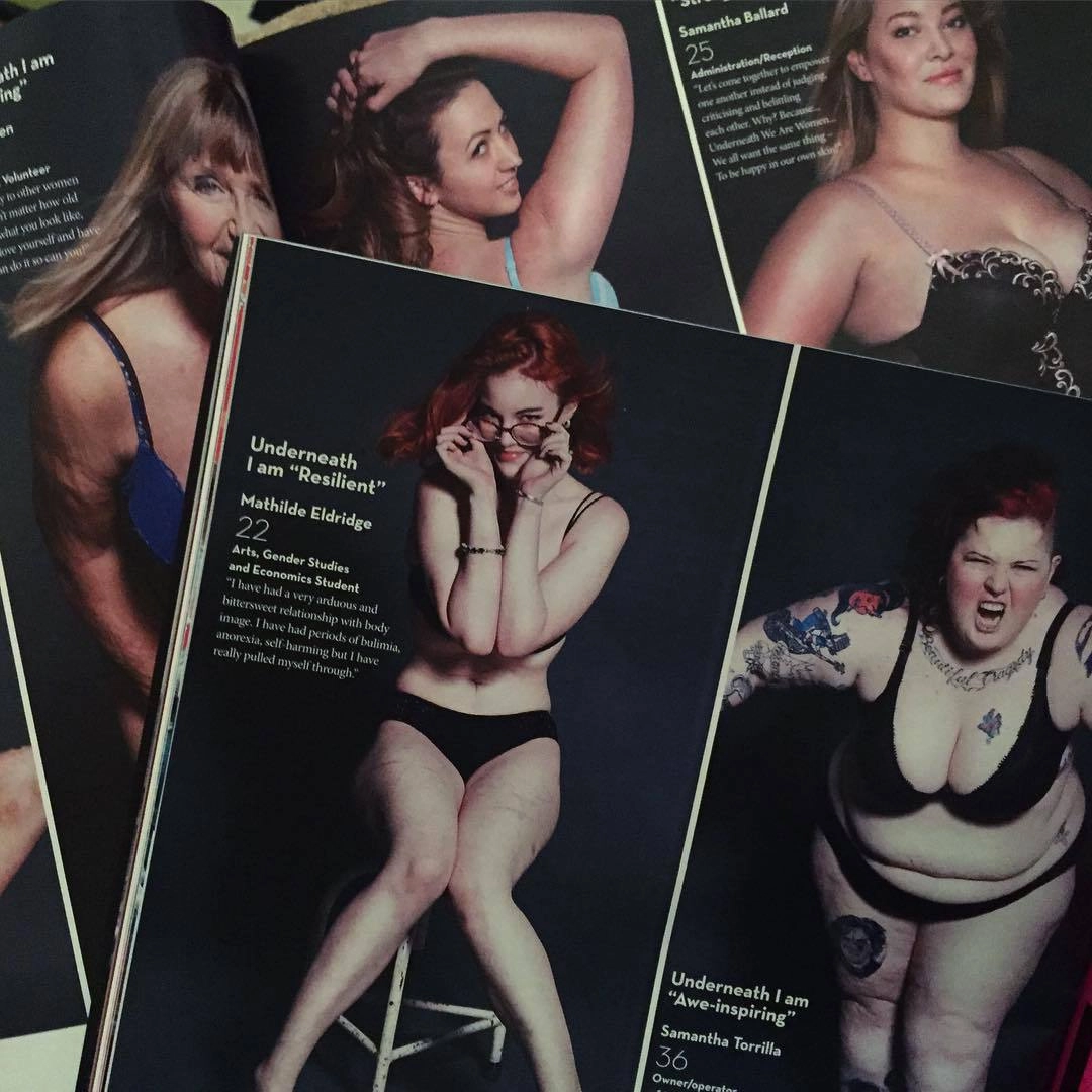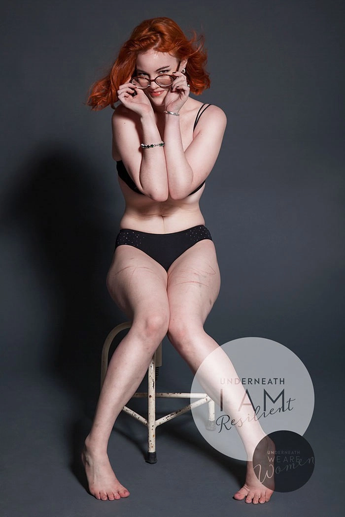 «Под одеждой мы все — женщины» — фотопроект австралийского фотографа Эми Херрман направлен на развенчание стандартов красоты. Эми сняла 100 портретов, 100 женских тел и 100 разных историй для своей будущей фотокниги. По словам автора, на каждой страничке только честные без фотошопа фотографии женщин — худых и толстых, молодых и взрослых, с татуировками и физическими недостатками, очень разных, но бесконечно прекрасных, потому что каждая из них — женщина.