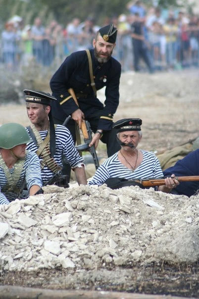«Под нами история. Реконструкции проходят на многих исторических местах, но нигде не ощущаешь связь с прошлым так, как в Севастополе. Мы задействовали все возможные дополнительные средства и дополнительных участников. Это участники те, которые прибыли сюда в проекте Знамена Победы, это те, кто стоял в обороне Севастополя, это казачество. Мы привлекли сюда всех, чтобы все знали и помнили, какой ценой завоеван наш мир, наше счастье. Следующий год — 160-летие начала Крымской войны. Есть большие заявки, большое количество иностранных клубов. А сегодня, скажем так, генеральная репетиция. Сам процесс, я не могу сказать, что привлекает, я говорю, это болезнь, окунуться в ту эпоху. Ну есть люди, которые увлекаются парашютным спортом, кто-то серфингом. А мы вот этим», — говорит один из реконструкторов В. Бобровницкий.