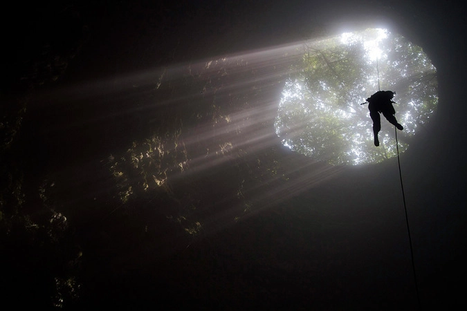 Студент Университета Индонезии спускается в пещеру Джомбланг недалеко от древнего города Джокьякарты. © Dwi Oblo/Reuters