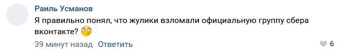 Подписчики «Сбера» во «ВКонтакте» начали получать мошеннические письма