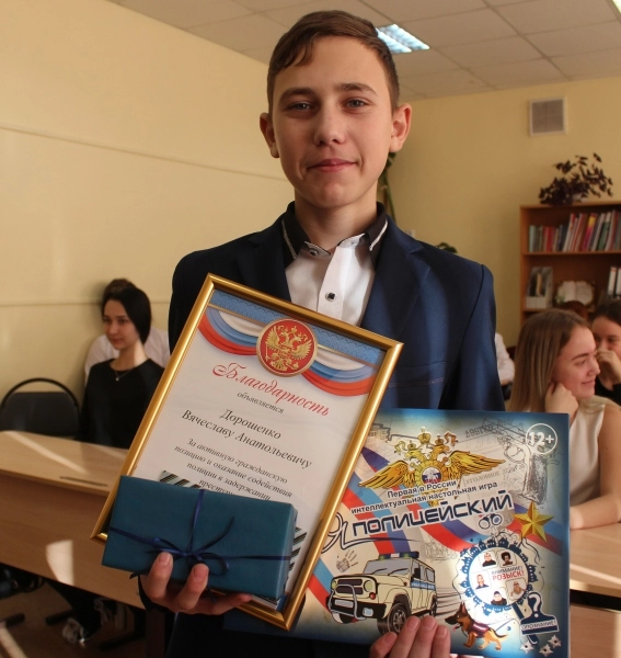 Представители ГУМВД Иркутской области в торжественной обстановке вручили Вячеславу подарки, среди которых была настольная игра «Я — полицейский». Школьнику обещали дать рекомендации для поступления в вуз МВД, а также пригласили работать в полицию после окончания школы.